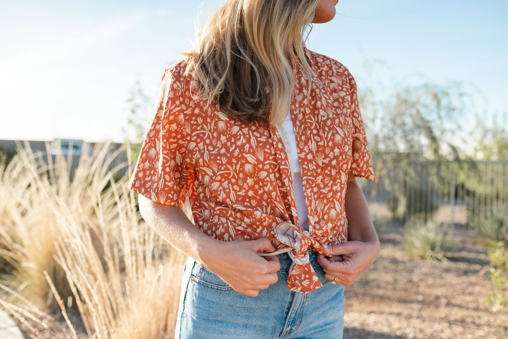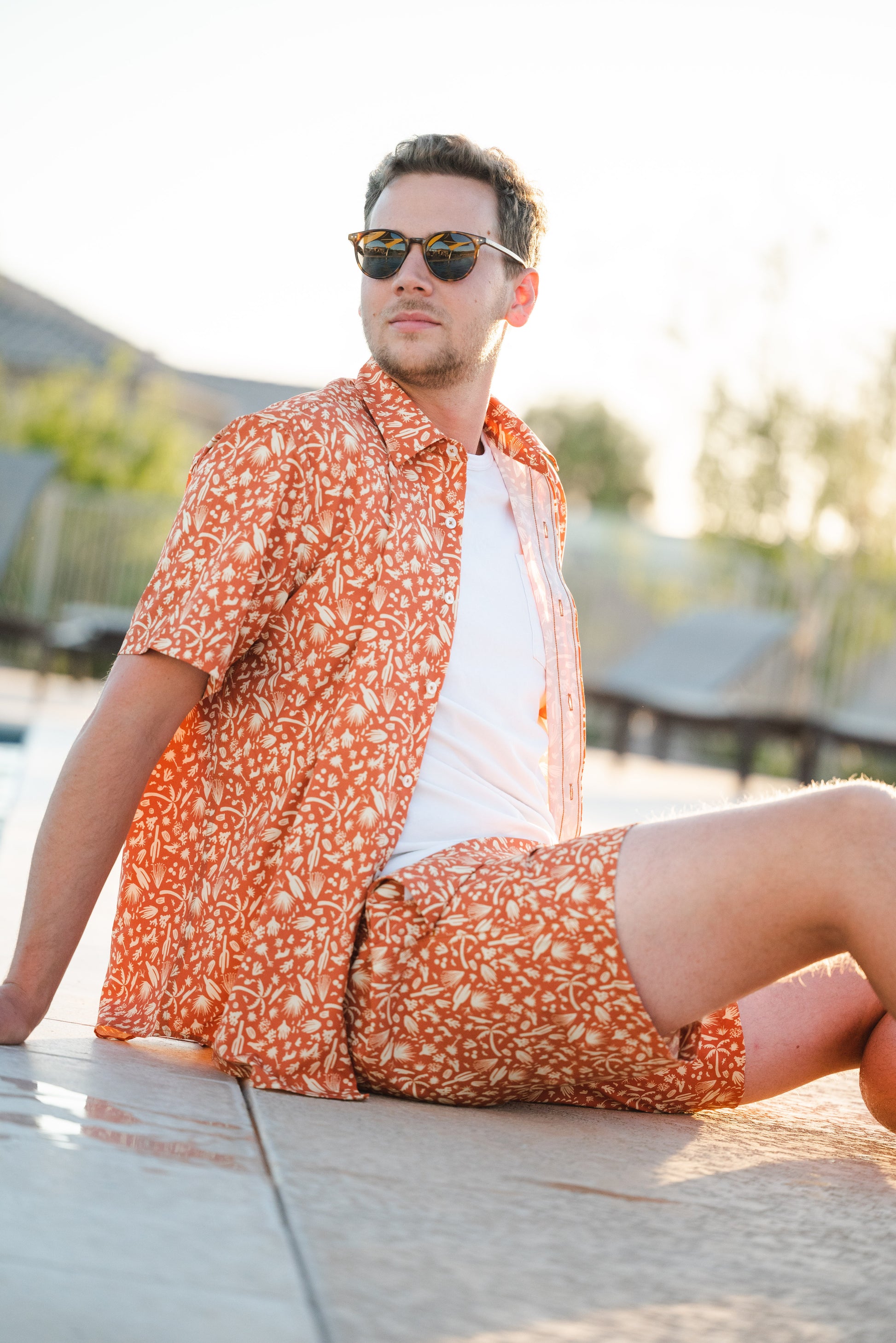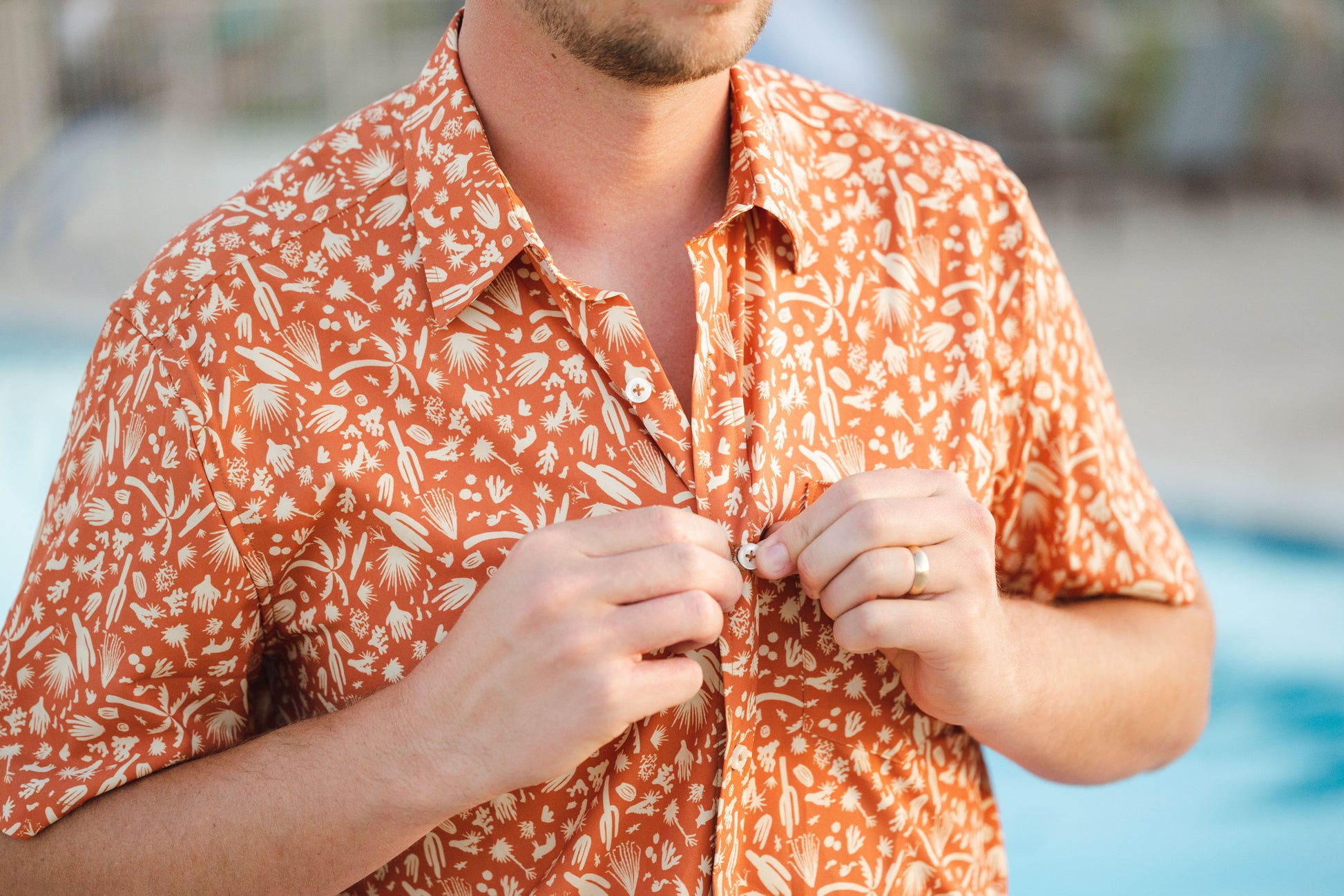 Lounge by the pool in this Why I Love Where I Live designed button-up shirt!