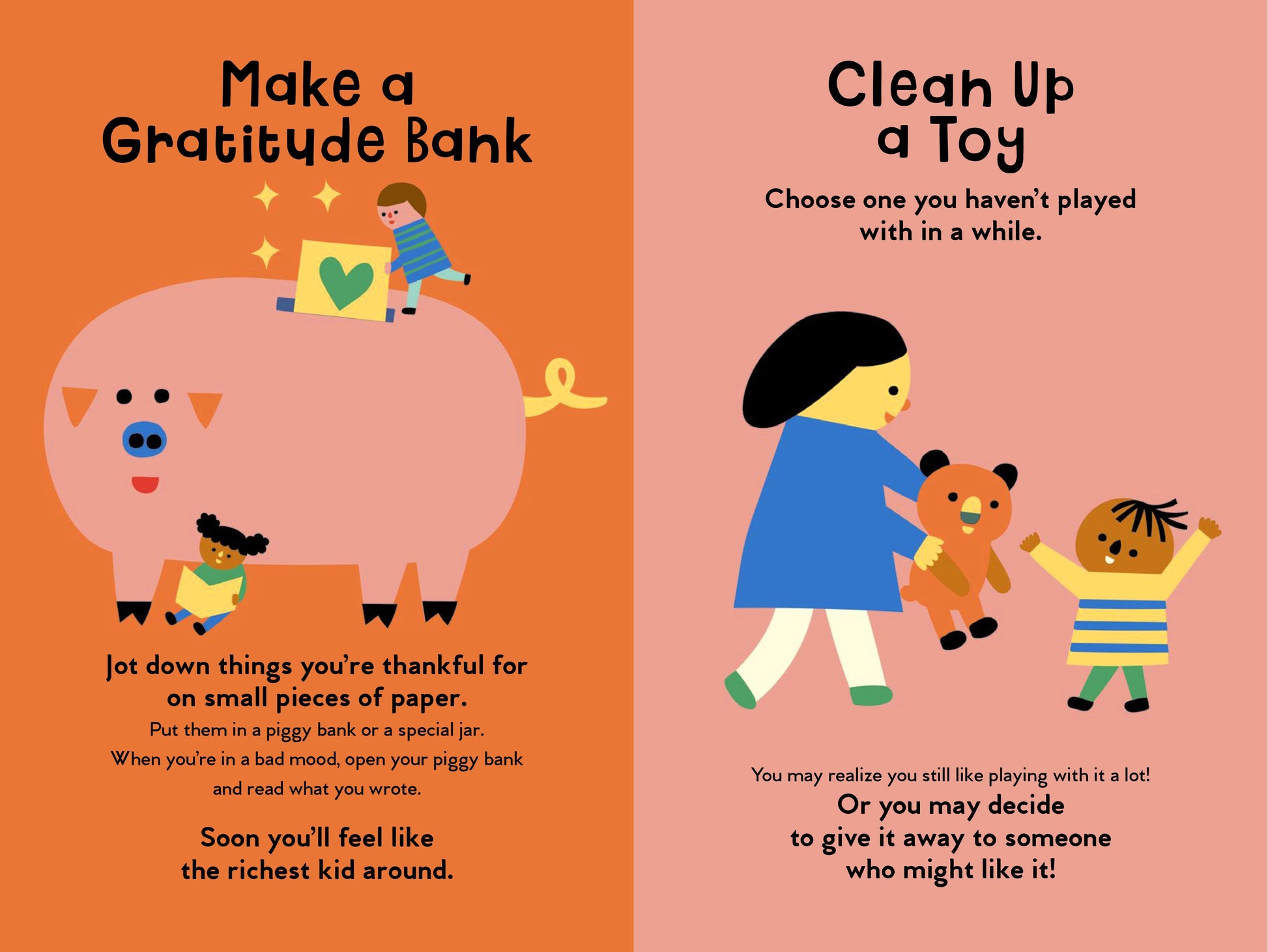 The more we notice and appreciate all the good things around us, the better we feel — and the better we feel, the more good we can do for others. Give Thanks offers simple ways kids can be aware of the gifts at hand in their lives — and reap the feel-good benefits. The book features 50 simple activity prompts, from starting a gratitude journal and taking a thankfulness walk to playing gratitude games at the dinner table and making thankful flowers (the petals represent points of gratitude), that go beyond simply saying “thanks,” all brought to life by the irresistably charming illustrations of Hsinping Pan. Each page offers an encouraging, uplifting, actionable way to help kids recognize they are fortunate — and to feel good about their place in the world.