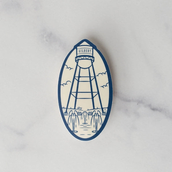 This Gilbert Water Tower vinyl sticker is 3 inches on the long side. Stickers are printed on high quality outdoor grade vinyl and laminated adding durability, scratch protection, and UV protection. Water proof and weatherproof, you can put these on your laptop, car, water bottle, bicycle, etc!