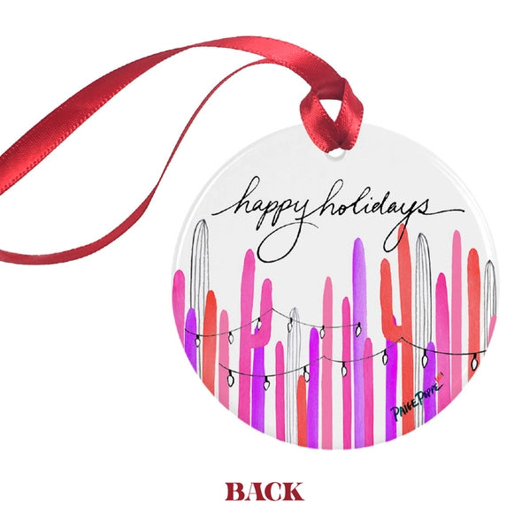 Pink Saguaro Lights Watercolor Ornament