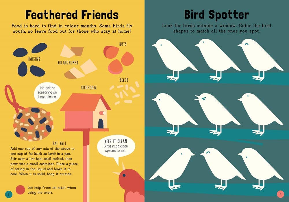 Write, draw, think, listen, and dare with the Adventure Journal: 50 Things to Try in the Fall. Begin on any page and do as many activities as you can fit in a day, in any order you’d like. Activities are color coded to help you choose where to start: try pink for “Explore,” yellow for “Dare,” blue for “Make,” and more! Make your own birdfeed; draw your local wildlife; carve faces into squash; and try a “daily dare.”