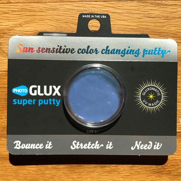 This GLUX putty is sensitive to U.V. light, so it changes color in the sun. It. Bring it out on a bright day and it will turn blue. Place an object on it and you will create a silhouette print. Now that's the picture.