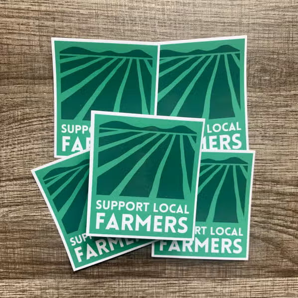 Show your appreciation for local farmers and their hard work with our Support Local Farmers sticker from the Support Local series. This vibrant and eye-catching sticker is the perfect way to spread awareness about the importance of locally sourced produce and products. Whether you're an advocate for sustainable agriculture or simply want to show your support for your community, this sticker is a wonderful addition to your collection.
